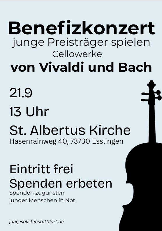 Die jungen Solisten Stuttgart, gegründet 2024 spielen am 21.9 um 13 Uhr ein Konzert in Esslingen in der St. Albertus Kirche.