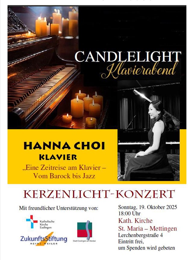 Die Pianistin Hanna Choi lädt Sie zu einer musikalischen Zeitreise ein, die Sie durch die Epochen vom 16. bis zum 20. Jahrhundert führt. Von der feinen Schönheit des Barock über die klare Struktur der Klassik und die leidenschaftliche Ausdruckskraft der Romantik bis zu den schimmernden Klangfarben des Impressionismus sowie der facettenreichen Harmonie und dem Rhythmus des Jazz.“ Freuen Sie sich auf großartige Klavierwerke von Bach, Beethoven, Rachmaninoff, Debussy, Gershwin und mehr!