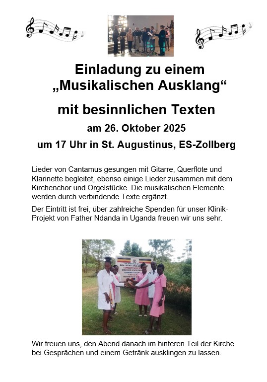 am 26. Oktober 2025 um 17:00 Uhr in der Kirche St. Augustinus/Zollberg, zugunsten des Klinik-Projekts in Uganda