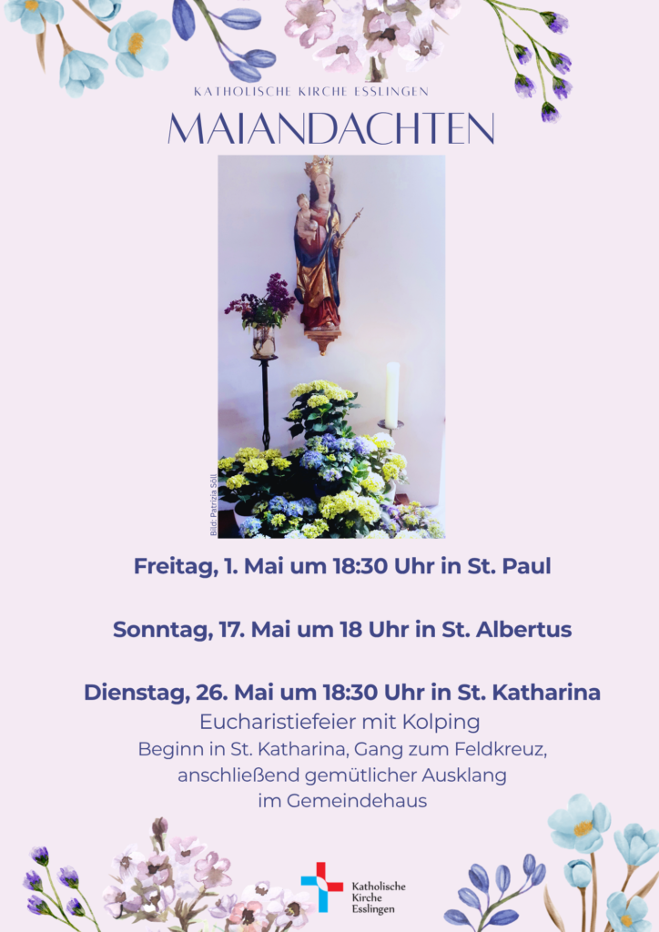 Eucharistiefeier mit Kolping Beginn in St. Katharina, Gang zum Feldkreuz, anschließend gemütlicher Ausklang im Gemeindehaus