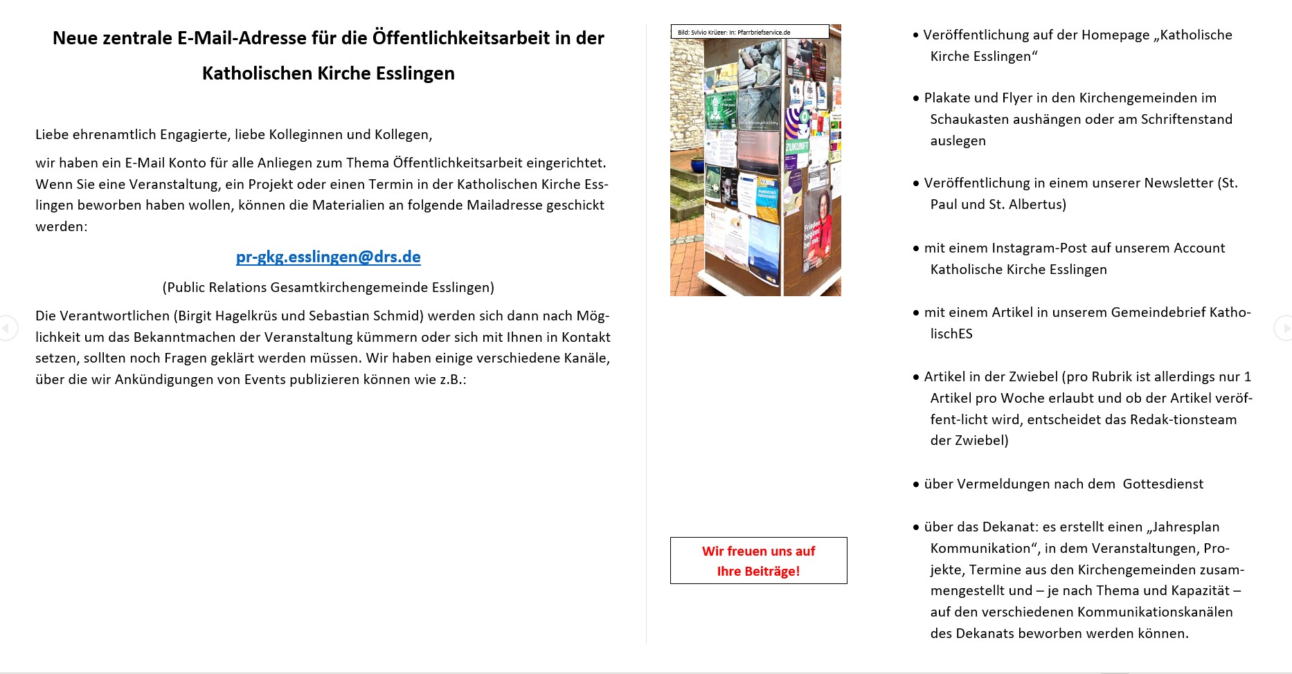 Neue zentrale E-Mail Adresse für die Öffentlichkeitsarbeit in der Katholischen Kirche Esslingen Januar 8, 2026 by Birgit Hagelkrüs | No Comments